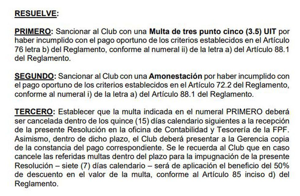 La Universidad San Martin de Porres y el club Deportivo Municipal incumplieron con el pago de AFP en noviembre. La Resolución N° 0009 – CCL – 2020 dispuso sancionar a la San Martin con amonestación; mientras que los ‘ediles’ fueron multados, a través de la Resolución N° 0006 – CCL – 2020, con 3.5 UIT.