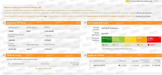 Según reportes de las entidades financieras debidas, el 'Loco' adeuda más de dos millones y medio de soles, lo que entró a calificar como pérdida en uno de los bancos más importantes del país.