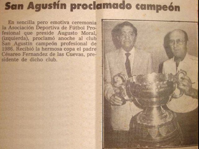 Colegio San Agustín debutó con un triunfo por 2-1 a domicilio ante Unión Huaral, el sábado 14 de junio de 1986. Jorge Rubio fue el primer héroe de esa campaña al anotar un doblete casi desapercibido, pues la atención estaba en el Mundial de México 1986.