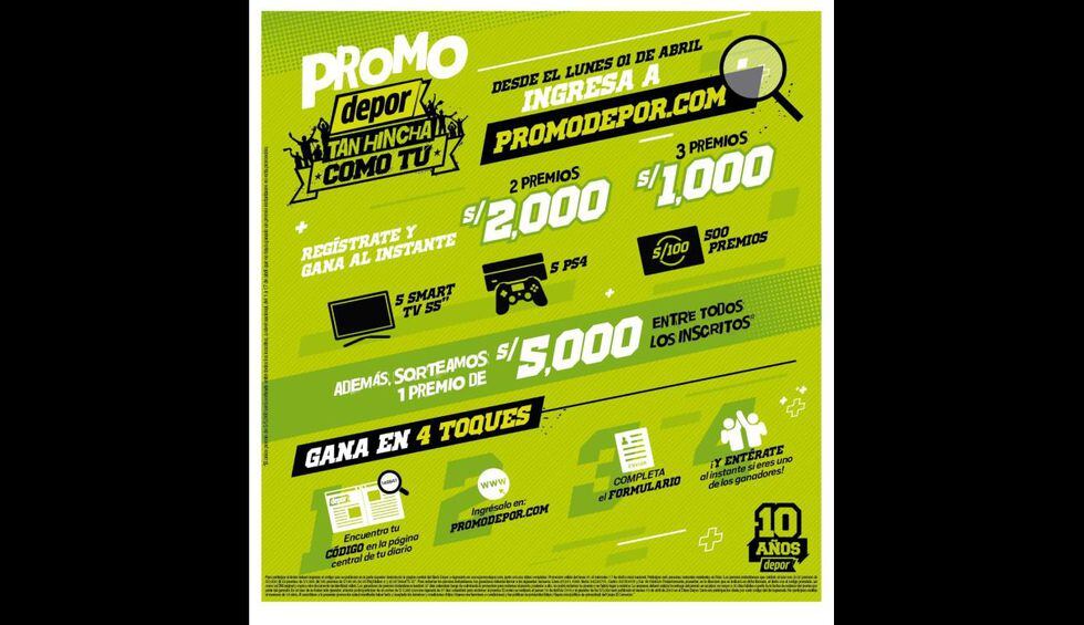 Depor cumple 10 años y lo celebrará a lo grande con su hinchada. Desde el lunes 1 de abril, Depor te trae una nueva 'promo', donde podrás ganar dinero en efectivo, TV Smarts, Play Station 4 y más, solo deberán estar atentos a nuestra edición impresa del diario a nivel nacional.