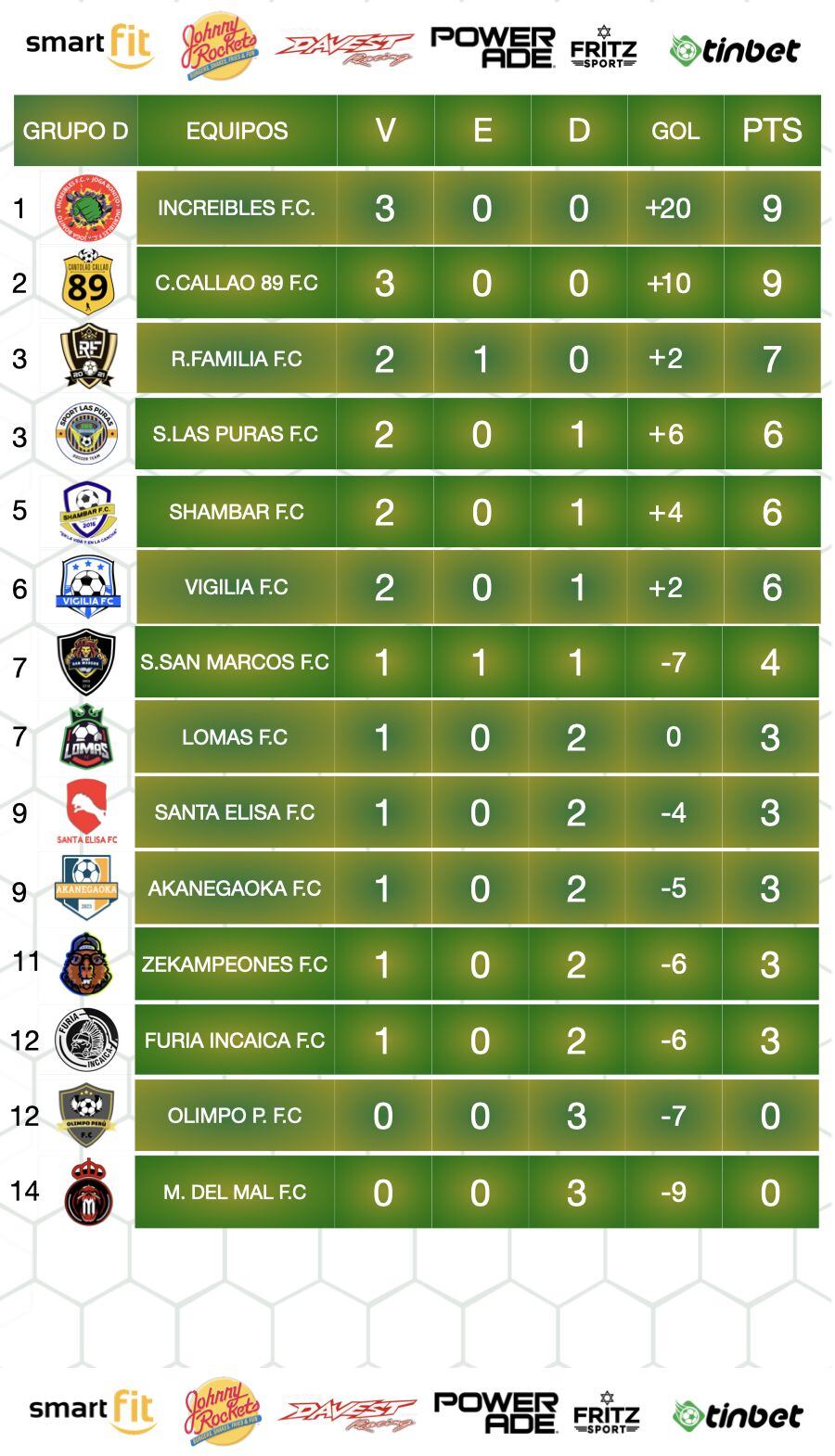 GRUPO D (lo conforman 14 equipos)