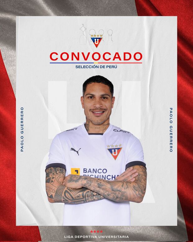 Luego de que saliera a la luz la lista definitiva de convocados de la ‘Bicolor’ -para afrontar el inicio de las Eliminatorias Sudamericanas-, LDU le dejó un recado al máximo goleador histórico de la Selección Peruana. “¡El Depredador estará en las Eliminatorias representando a Perú! Muy orgullosos de ti, Paolo Guerrero. PG9″, apuntó.