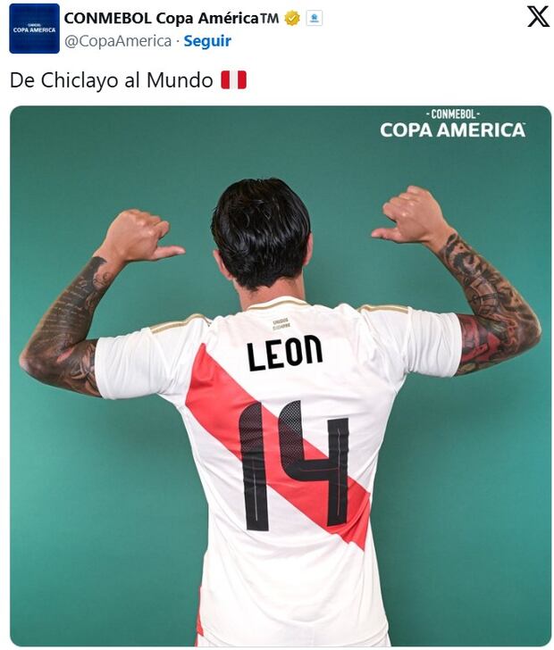 Este no fue el único saludo desde alguna entidad relacionada al fútbol en Sudamérica. La cuenta de la Copa América publicó una foto con la camiseta de Gianluca Lapadula. La curiosidad de este post es que cambiaron el apellido ‘Lapadula’ por el nombre de León. Además, porta el dorsal ’14′, nomenclatura romanada que recibió la nueva máxima autoridad de la iglesia.
