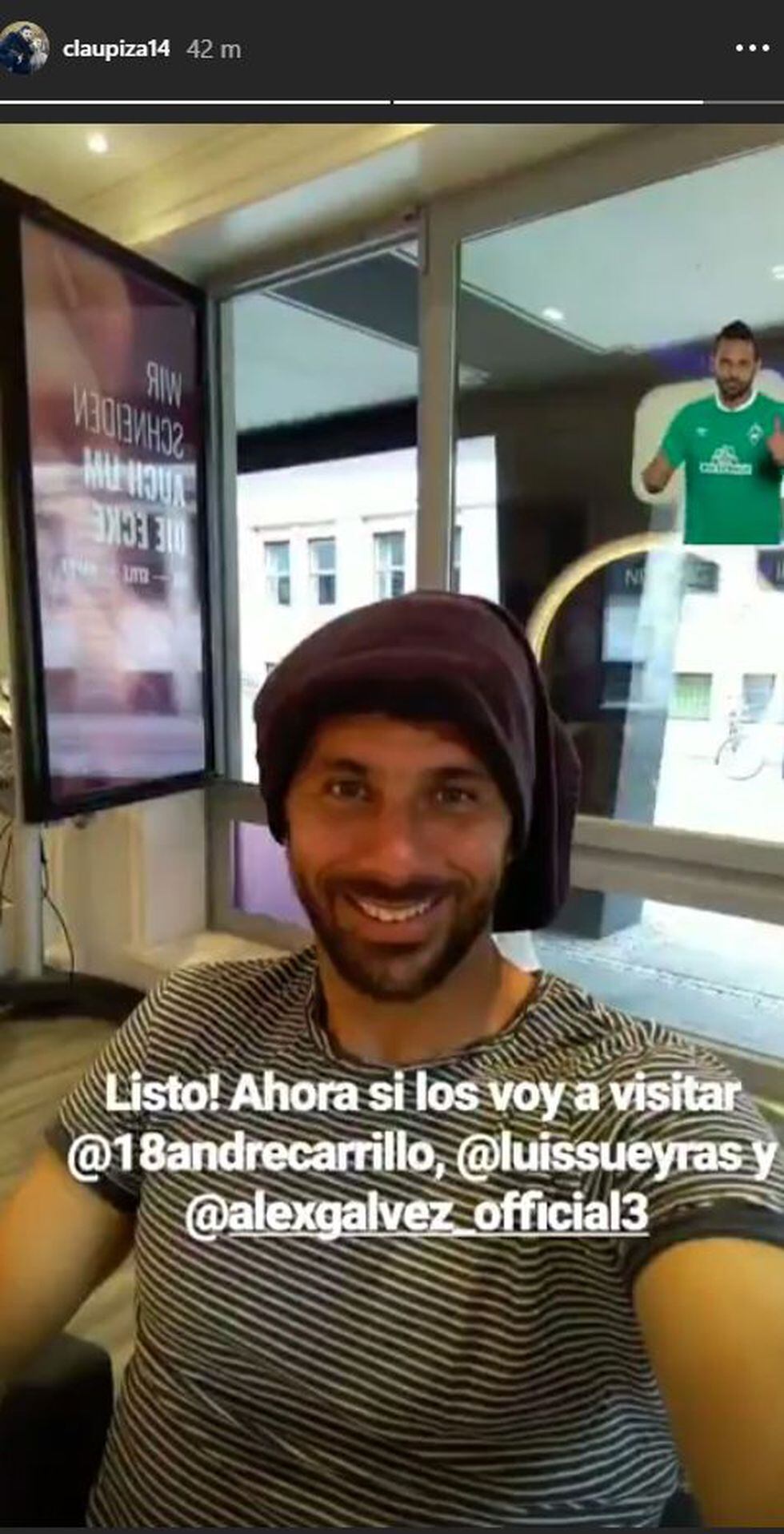 El 'Bombardero de los Andes' subió una historia de Instagram con un pañuelo en la cabeza simulando un turbante árabe y etiquetó a su ex compañero de Selección con el texto: "Listo, ahora sí los voy a visitar".