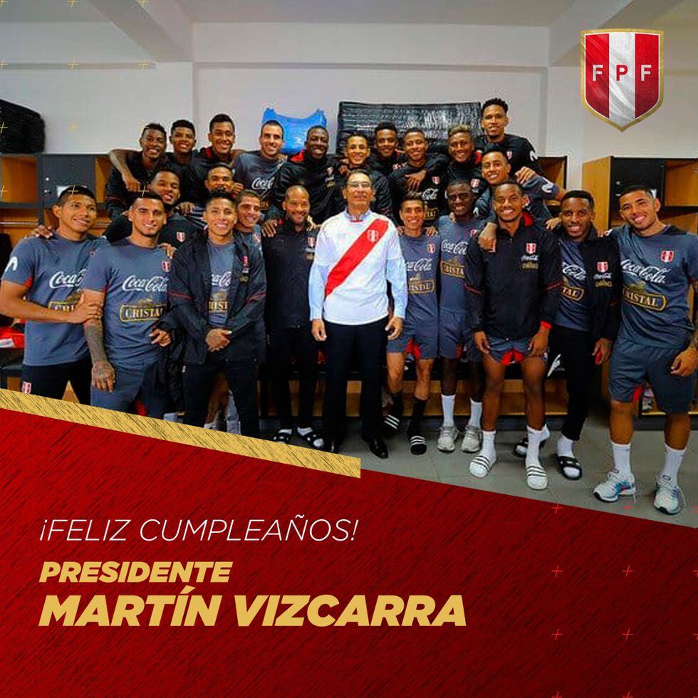 “La Federación Peruana de Fútbol envía un saludo de cumpleaños al Presidente de la República Martín Vizcarra y los mejores deseos de salud y fortaleza. Hacemos fuerza junto a él para superar las dificultades del país. Unidos ganaremos este partido”, público la FPF a través de sus redes sociales, en una foto del mandatario nacional junto a la Selección Peruana.
