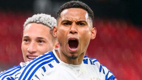 Tiro libre para Perú. Falta de Moise Bombito contra Paolo Guerrero.