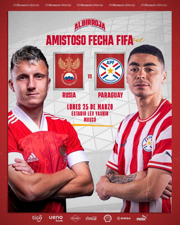 En noviembre pasado, el presidente de la Asociación Paraguaya de Fútbol, Robert Harrison, confirmó ante la prensa que la selección ‘guaraní' disputaría los amistosos de marzo frente a rivales europeos en el Viejo Continente. Sin embargo, el último 14 de febrero se confirmó solo un duelo ante Rusia, el cual se jugará en estadio de Dínamo de Moscú el viernes 25. ¿Por qué solo un rival? De momento, la APF no ha dado mayor detalle, pues en las redes sociales de Paraguay solo se tuvo noticias de la Sub-23, campeona del Preolímpico y ganadora del pase a los Juegos Olímpicos París 2024.