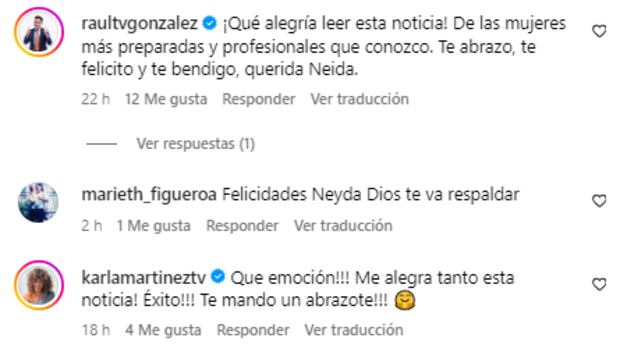 “¡Qué alegría leer esta noticia! De las mujeres más preparadas y profesionales que conozco. Te abrazo, te felicito y te bendigo, querida Neida”, indicó el presentador de noticias venezolano.