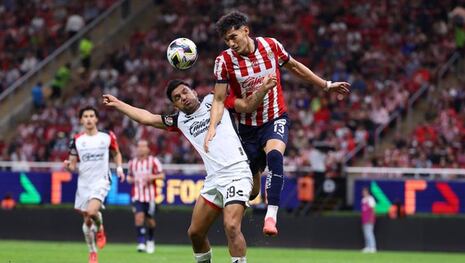 'Tala' Rangel despeja el peligro para Chivas al interceptar un centro por la derecha antes de que Henry Martín pudiera rematar.