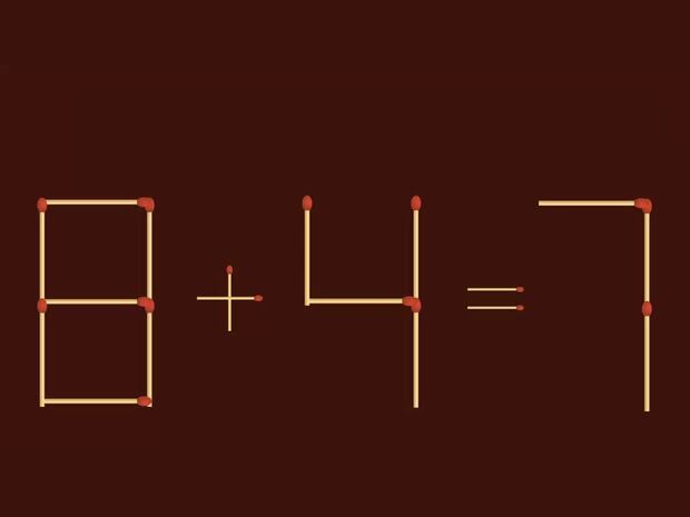 Desentraña este intrigante rompecabezas de cerillas, donde 8+4=7 con solo quitar 2 palillos y arreglar la ecuación. Sumérgete en el fascinante mundo de los retos matemáticos con cerillas, diseñados para pulir tus habilidades cognitivas.