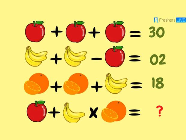 Manzana + 2 Plátano x Naranja = 34