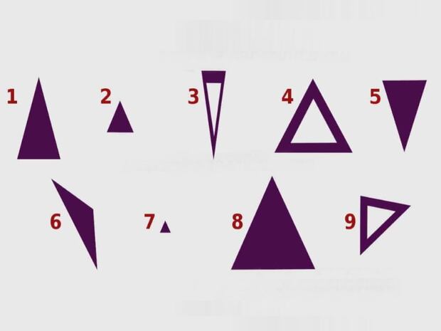 Los nueve triángulos que están en la imagen del test visual son diferentes. Tienes que mirarlos detenidamente para que puedas saber cuál es tu preferido. ¡Ojo! También te recalco que esta prueba ha gustado a muchos usuarios, a pesar de no poseer validez científica.