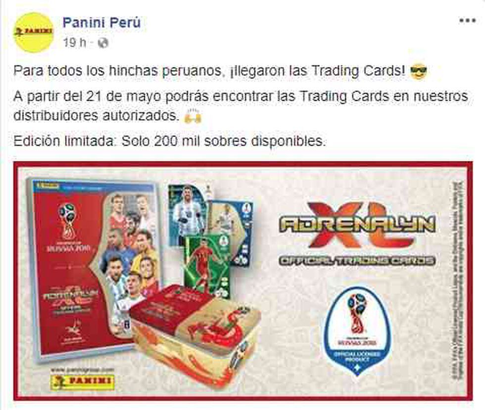 La fiebre del Mundial Rusia 2018 no acaba. A menos de un mes para que inicie el torneo de asociaciones más importante, Panini volverá a lanzar una nueva colección: Trading Cards Adrenalyn XL que saldrán a la venta desde este lunes 21 de mayo que incluye jugadores de la Selección Peruana que estarán en dicho certamen.