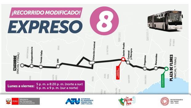 Dejará de operar en las mañanas en dirección al norte. Las personas que solían utilizar este servicio tendrán como alternativa el Expreso 9, que realizará paradas en las estaciones Plaza de Flores, Benavides, Angamos, Canaval y Moreyra, Javier Prado, Central, España, Caquetá y UNI.