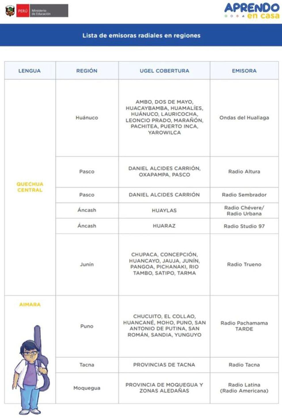 Conoce la lista de emisoras radiales para seguir EN DIRECTO tus clases del proyecto ‘Aprendo en Casa’ lanzada por el Ministerio de Educación para esta primera etapa del año escolar 2020 por el Estado de Emergencia que vive el país.