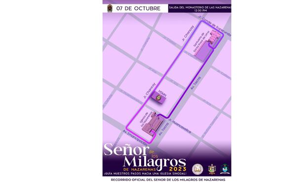 La procesión que saldrá el sábado 7 de octubre empezará en el Monasterio de Las Nazarenas y después seguirá por las avenidas Tacna, Emancipación, jirón Chancay, Callao.