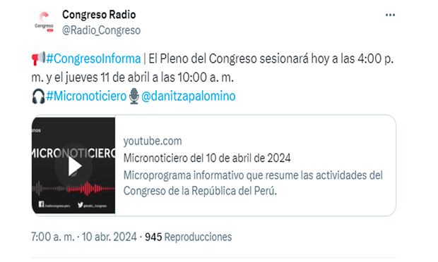 La sesión del 11 de abril en el Pleno es muy importante. (Foto: Captura/X)