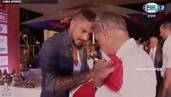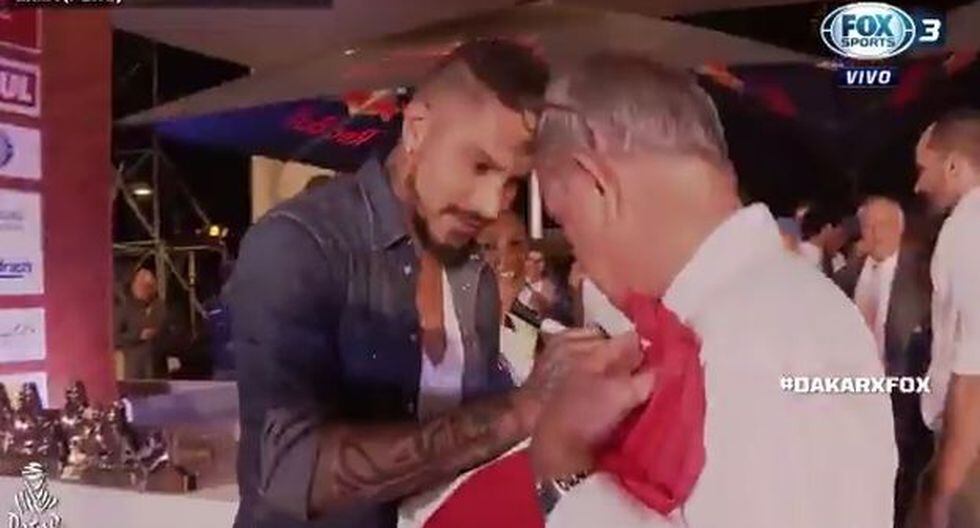 Paolo Guerrero se hizo presente en la premiación de los ganadores del Dakar y tuvo un bonito gesto al firmarle una camiseta de la selección peruana al director de la competencia de rally más difícil del mundo, Etienne Lavigne.