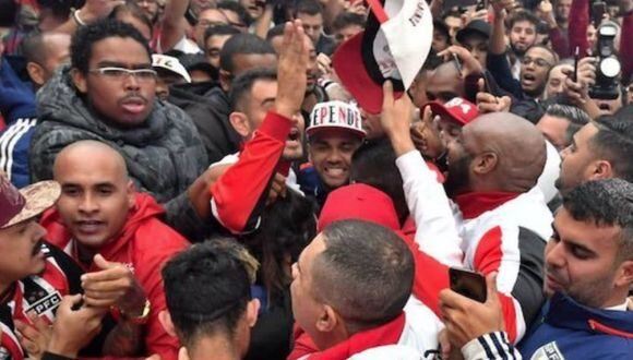 Dani Alves, que vestirá la camisa número 10 del Sao Paulo y será el jugador con mayor salario en la actual Liga brasileña, tuvo que contar con la ayuda de agentes de seguridad para abandonar Congonhas ante la presión de cientos de hinchas que agitaban banderas y llegaron a usar fuegos de artificio para saludarlo.
