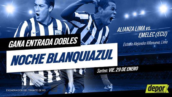 Aquí en Depor no queremos que te pierdas la fiesta blanquiazul y por eso sorteamos 4 entradas dobles para esta cita en el estadio de Matute, donde Alianza Lima se enfrentará al tricampeón ecuatoriano, Emelec, que le devolverá la visita.
