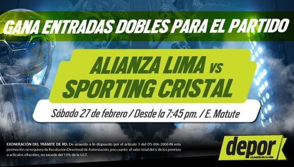 Alianza Lima y Sporting Cristal medirán fuerzas el sábado en Matute en el partido más esperado de la sexta fecha del torneo Apertura. Como ya es costumbre, Depor te pone los boletos para que asistas al gran partido y con un acompañante.