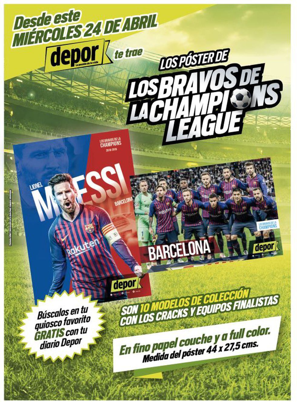 Desde el miércoles 24 de abril, Depor te regala las láminas de los jugadores más destacados del torneo en fino papel couché A-1 y a full color. Así podrás completar la colección de Los más bravos de la Champions League, que obtendrás gracias a tu diario preferido.