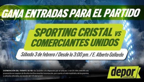 El partido entre Sporting Cristal y Comerciantes Unidos se jugará este sábado a las 3:00 p.m. en el Alberto Gallardo. Y aquí en Depor no queremos que te quedes sin alentar a tu equipo favorito por eso sorteamos 5 entradas dobles para este cotejo.