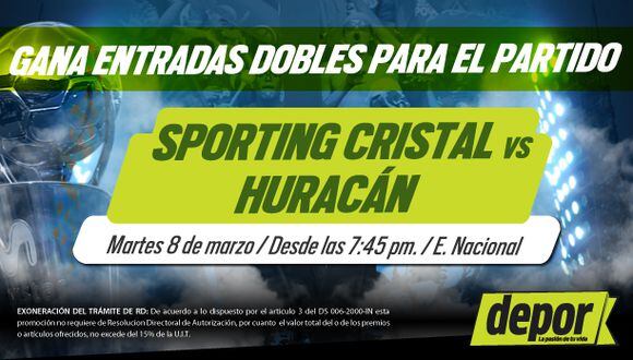 Este martes, Sporting Cristal se enfrentará a Huracán, a la 7:45 p.m., en el Estadio Nacional y quiere el aliento de su hinchada. Depor sorteará 5 entradas dobles para el partido de Copa Libertadores.