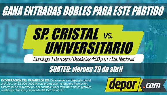 La fecha 14 del Torneo Apertura se juega este fin de semana con Sporting Cristal y Universitario de Deportes como protagonistas. Ambos equipos se enfrentan el domingo 1 de mayo, a las 4 p.m., en el Estadio Nacional y en Depor regtalamos 5 entradas dobles para que no te pierdas este partido.
