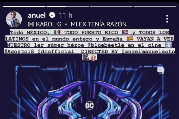 El intérprete de “Ella quiere beber” subió una historia a su Instagram en donde promocionaba la nueva película DC, “Blue Beetle”, y lo hizo utilizando de fondo musical la canción en cuestión.