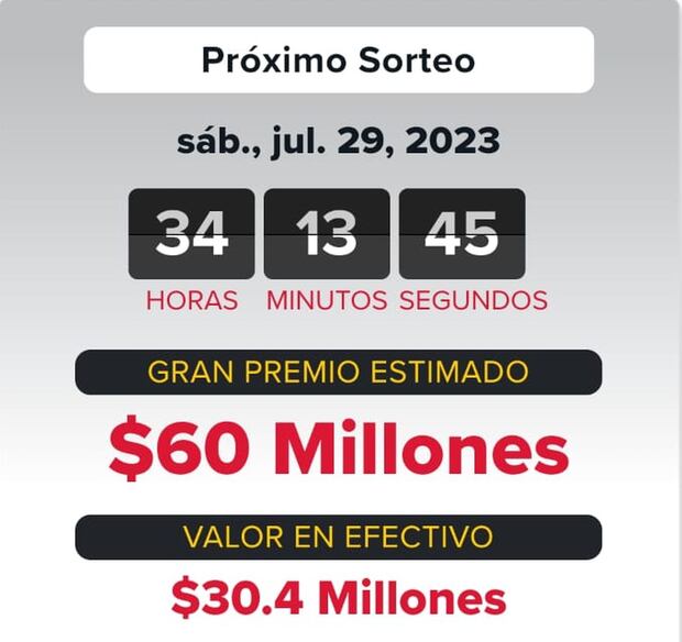 El sorteo del sábado 29 de julio será a las 10:59 p. m., hora del Este, y lo puedes seguir en vivo desde el sitio web de la lotería, en su canal de Youtube o a través de una estación de televisión local. También te puedes suscribir a la página para que te lleguen los números ganadores a tu bandeja de entrada.