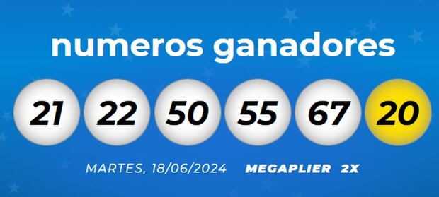 Los números ganadores del sorteo de Mega Millions del 18 de junio son: 21 - 22 - 50 - 55 - 67 - 20